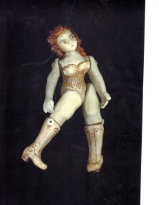 My own journey through the years has informed my art. I didn’t go to art school, nor did I spend enough time in college to earn any sort of degree. I do art. I’m lucky that I can make my living doing the things that inspire me. Not all riches are monetary. I work as musician, an actor, theatre instructor, props mistress and costumer, a mother and a wife, a member of the East Portland Eagles Lodge #3256 and an all around bookworm with an obsession with “women artists” from the past. My favorite hours are those when I find my way to my attic studio and spend some time with my “ladies”, my lost dolls.