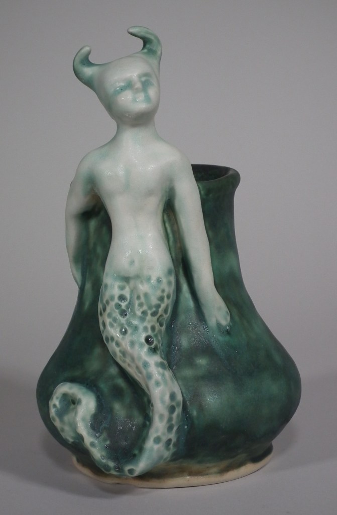 Mid-range ceramic, porcelain wash, copper oxide, glaze 7 x 6 x 5 inches